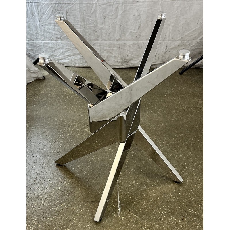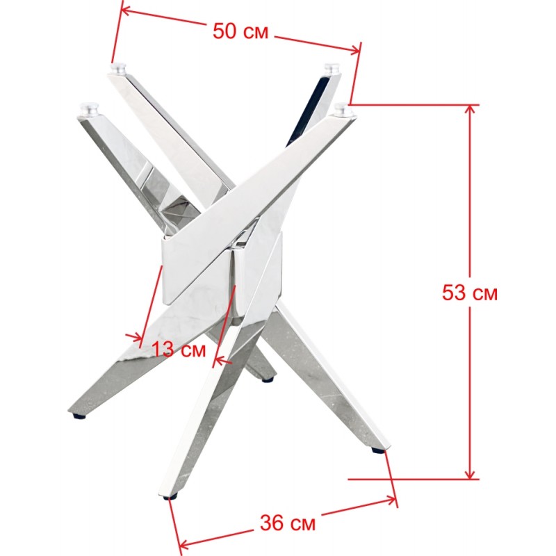 Журнальное подстолье из полированной нержавеющей стали (зеркальное). Лаковое покрытие. Рекомендуемый размер столешницы: Ø80, 70х70.