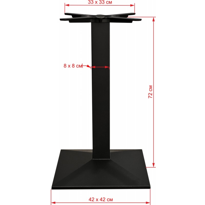 Подстолье чугунное. Материал: чугун. Цвет черный матовый. Порошковое напыление. Рекомендуемый максимальный размер столешницы - Ø80, 70x70.