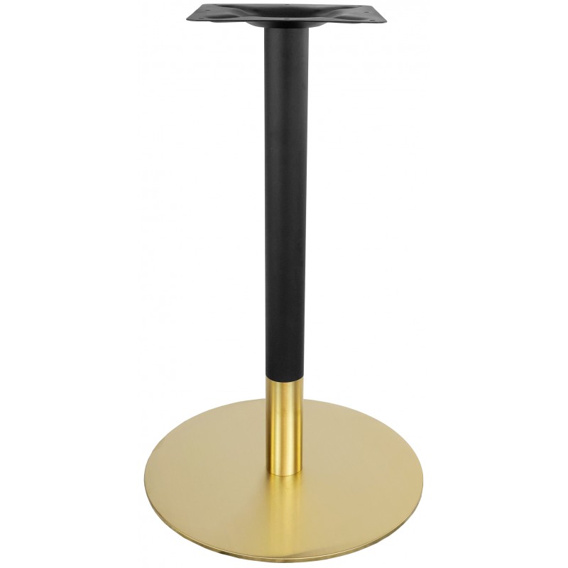 Подстолье металлическое. Труба-D-60, черное порошковое покрытие матовое. Золотая вставка и основание из матовой нержавейки. Основание плоское. Рекомендуемый размер столешницы: D-80, 80х80.