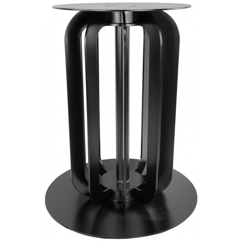 Подстолье металлическое. Труба и основание-черное порошковое покрытие матовое. Основание плоское. Рекомендуемый размер столешницы: D-140.
