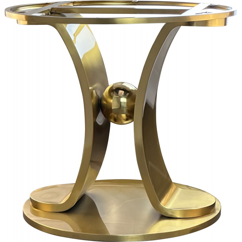 Подстолье из полированной нержавеющей стали (полированное) золотого цвета (нитрит титана). Лаковое покрытие. Диаметр верхней части: 80 см. Рекомендуемый размер столешницы: Ø160.