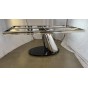 Подстолье из полированной нержавеющей (зеркальное) стали. В основании закаленное стекло толщиной 15 мм. Рама под столешницу размером 176х86.