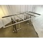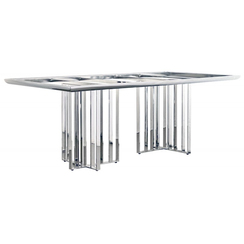 Подстолье из полированной нержавеющей стали (зеркальное). Лаковое покрытие. Рекомендуемый размер столешницы: 250х150.