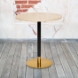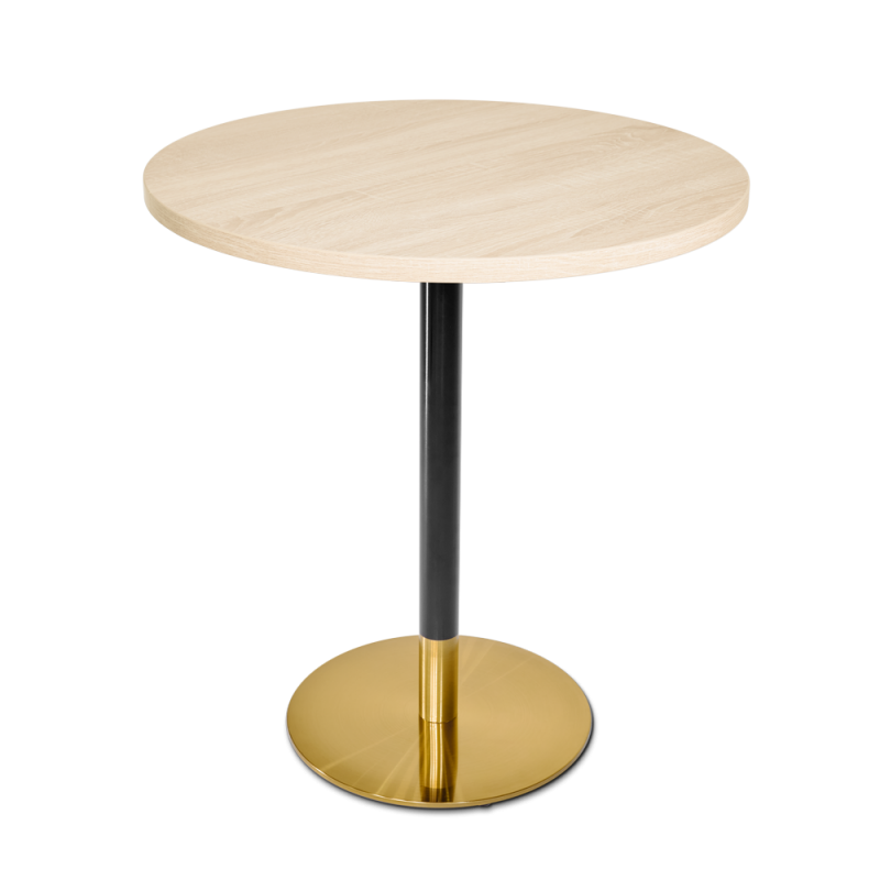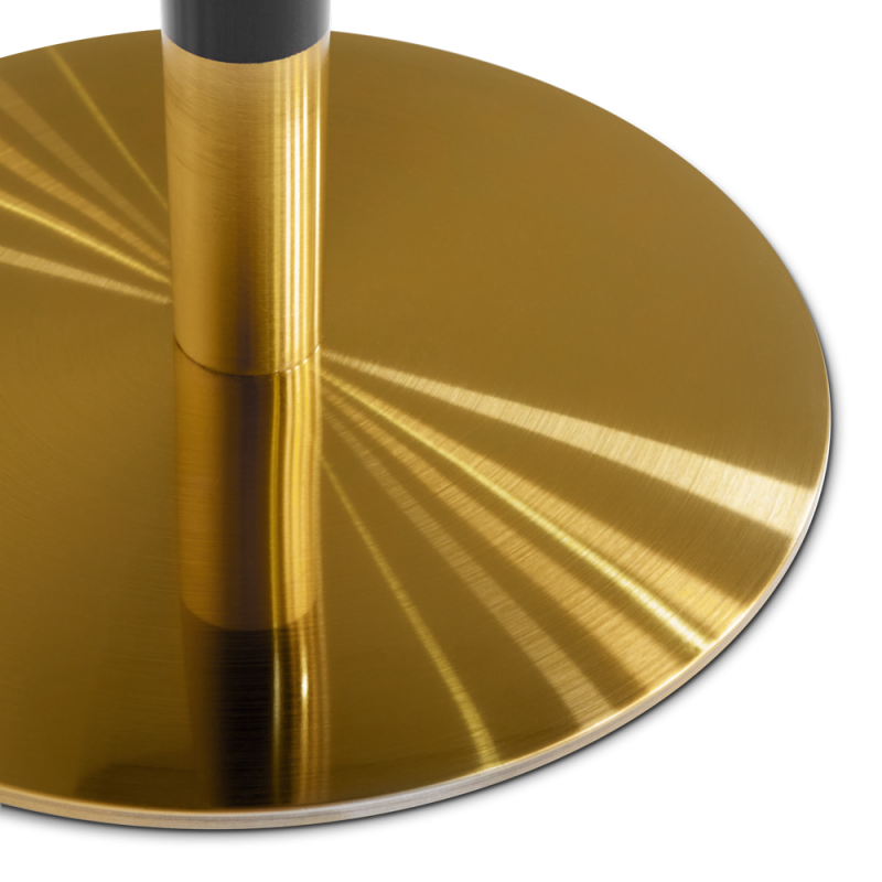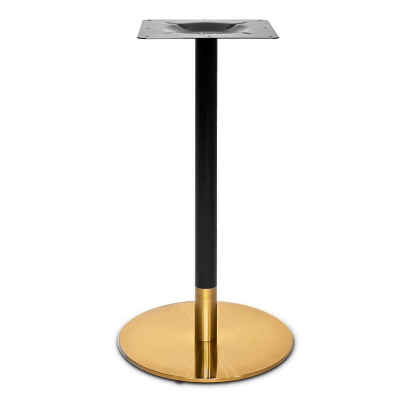 Это подстолье – имеет комбинированную поверхность – нержавеющая сталь золотого цвета с черной глянцевой эмалью. Металлическая поверхность имеет блестящую, но в то же время не зеркальную, а слегка матовую поверхность, так называемую «сатинированную».