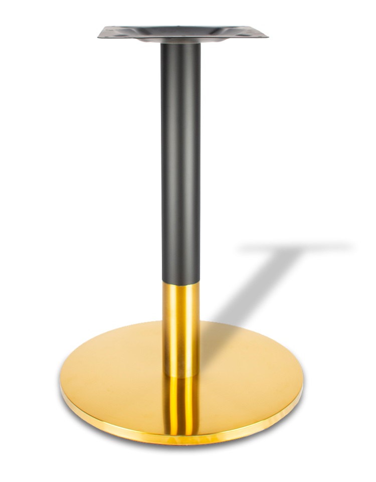 Это подстолье – имеет комбинированную поверхность – нержавеющая сталь золотого цвета с черной глянцевой эмалью. Металлическая поверхность имеет блестящую, но в то же время не зеркальную, а слегка мато..