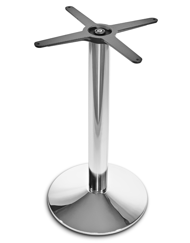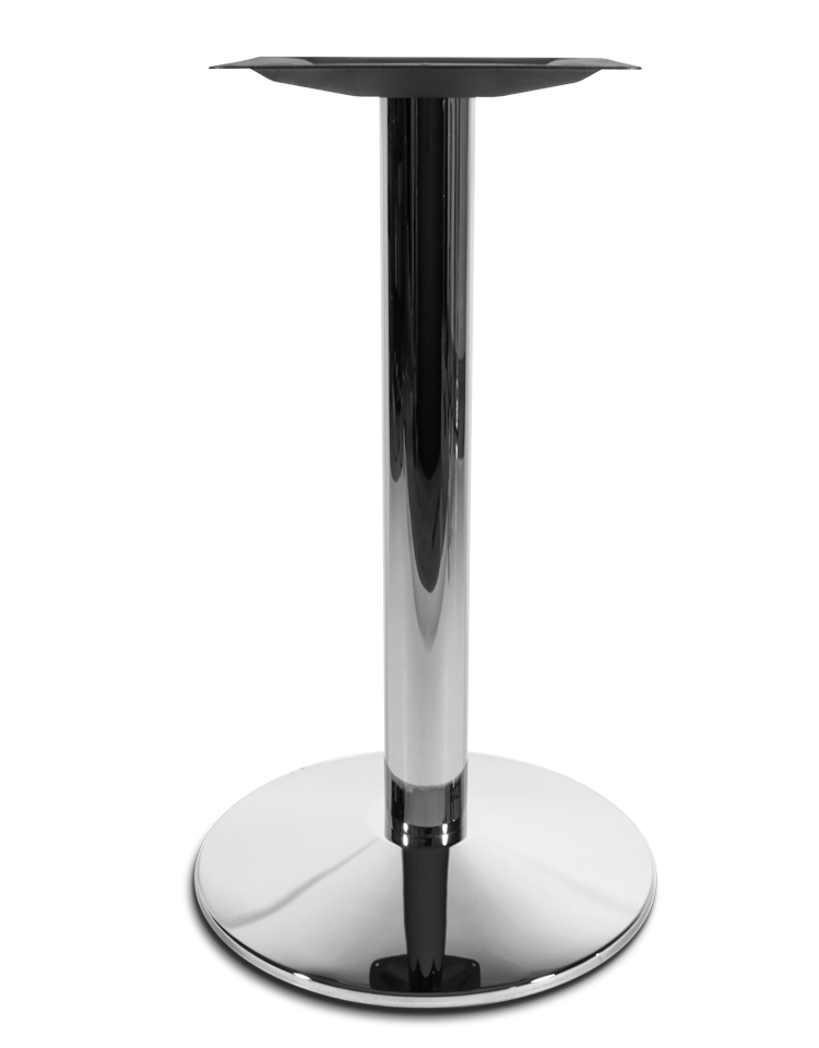 Стальное хромированное подстолье. Верхняя пиастра чёрная. Общая высота 720 мм. Подходит для столешниц: Ø600; Ø700; Ø900. Максимальная нагрузка 50 кг.
