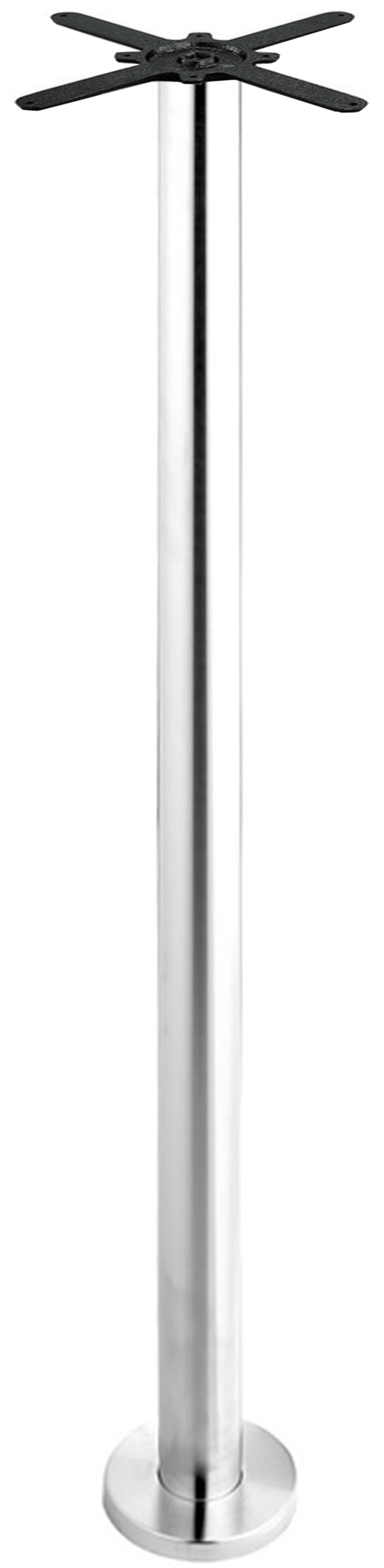 Подстолье с креплением к полу. Материал: полированная нерживеющая сталь (матовая). Размер крестовины: D45 см, диаметр трубы 7,6 см. Рекомендуемый размер столешницы: D-80, 80х80