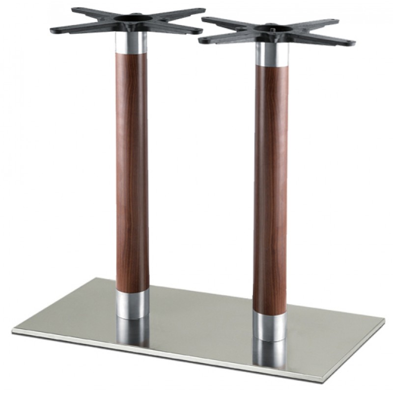 Подстолье металлическое. Труба и основание-нержавеющая сталь матовая. Труба лиминированная под текстуру дерева. Рекомендуемый размер столешницы-140*85.