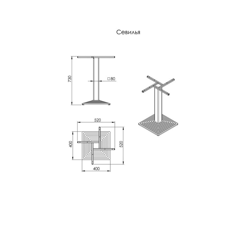 Подстолья серии "Севилья " изготавливаются из ЧУГУНА и стали с применением технологии порошкого крашения металла. Подстолья серии "Севилья" снабжены пластиковыми подпятниками в нижней части основания, для предупреждения повреждений напольных покрытий в помещении. Поставляется в разобранном виде.