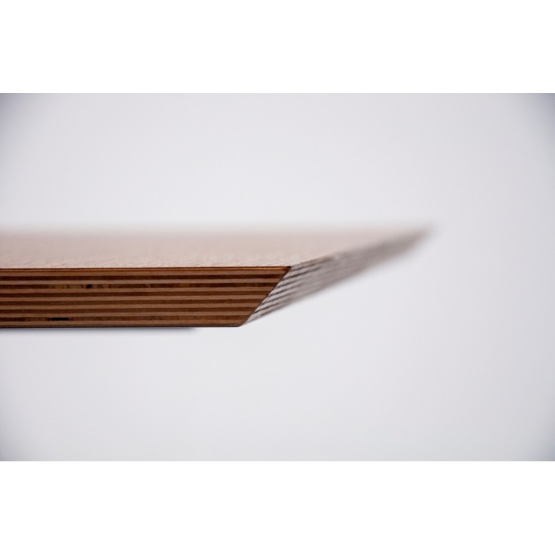 Столешница Камо 1 HPL изготовлена из фанеры толщиной 20 мм. и покрыта HPL пластиком с лицевой стороны, тыльная и торцевая сторона столешницы покрываются лаком. Срез торца выполнен под углом 45°.