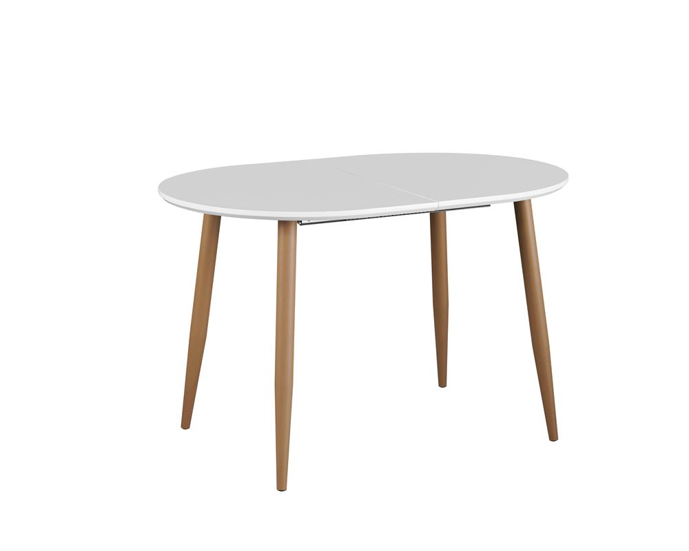 Обеденный стол, размеры столешницы 120*80 см. Дополнительно раскладывается на 60 см.Цвет столешницы - белый, ножки металлические, покрашены в цвет светлого дерева.Характеристики:Ножки : металлСт..