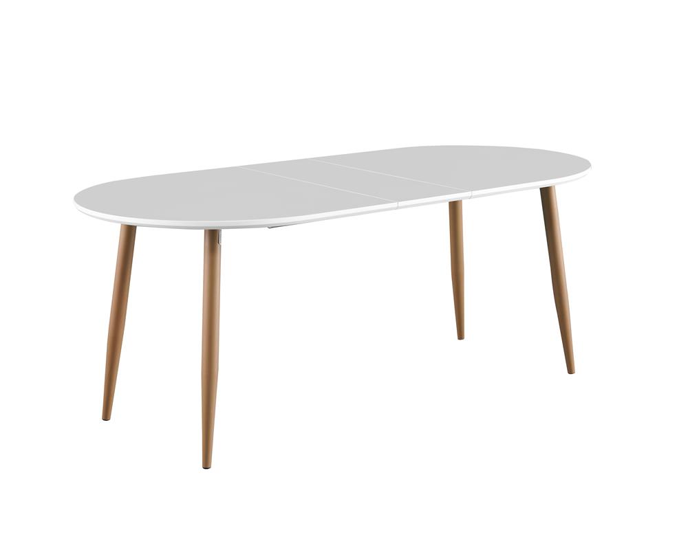 Обеденный стол, размеры столешницы 160*90 см. Дополнительно раскладывается на 60 см.Цвет столешницы - белый, ножки металлические, покрашены в цвет светлого дерева.Характеристики:Ножки : металлСт..