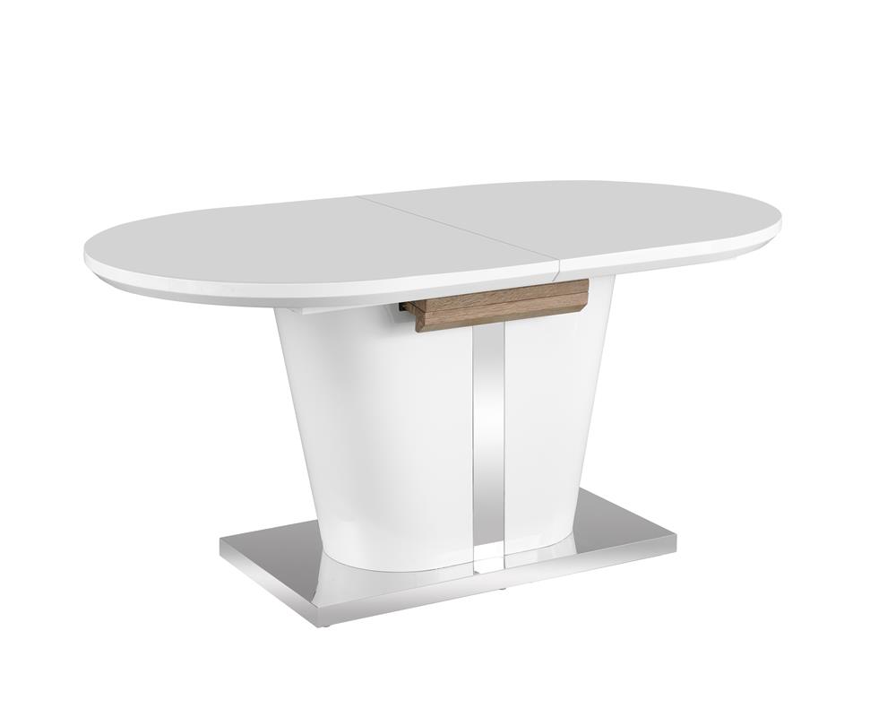Стильный обеденный стол с раскладной столешницей.Размеры столешницы 160*90 см. Дополнительно раскладывается до 220 см.Цвет: белый глянцевый.Характеристики:Ножки : МДФ База:&n..