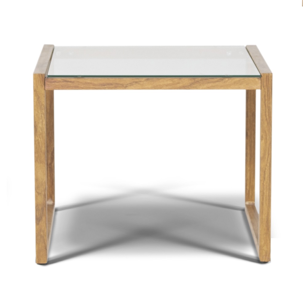 "Барселона" кофейный стол из акации, с стеклянной столешницей толщиной 5мм, размер 650x650x330.