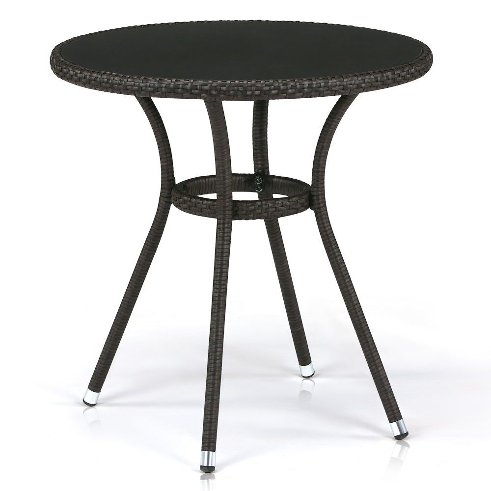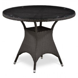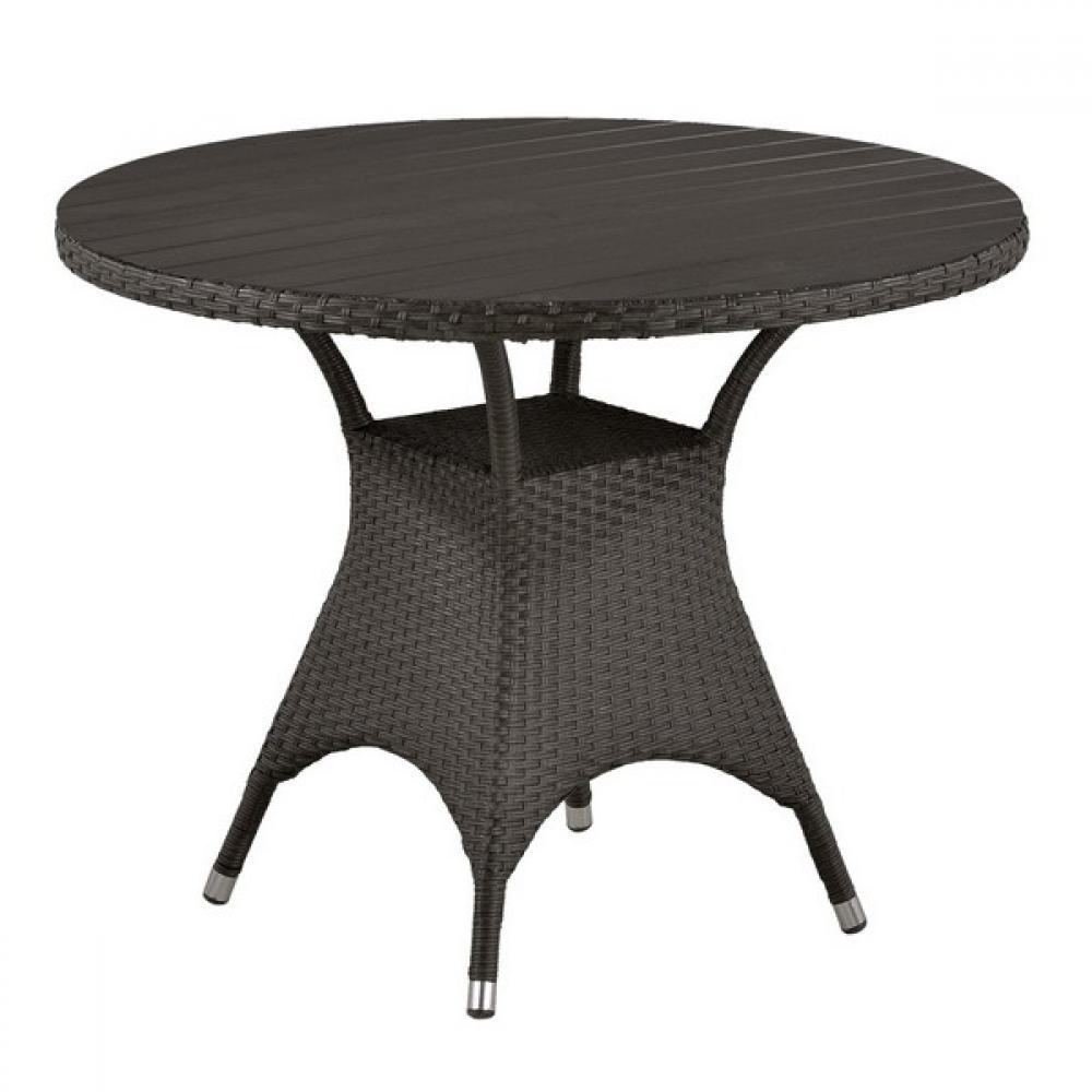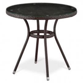 Стол: D96xH74 см. Материал: искусственный ротанг. Столешница: древесно-полимерный композит (декинг). Каркас: стальная труба. Цвет: Brown..