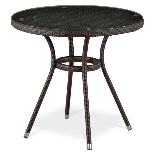 Стол: D72xH74 см. Столешница: стекло закаленное-5мм, цвет -черный. Каркас: сталь. Материал: искусственный ротанг. Цвет: Brown. Объем и вес 0,07 куб. м, 15 кг.