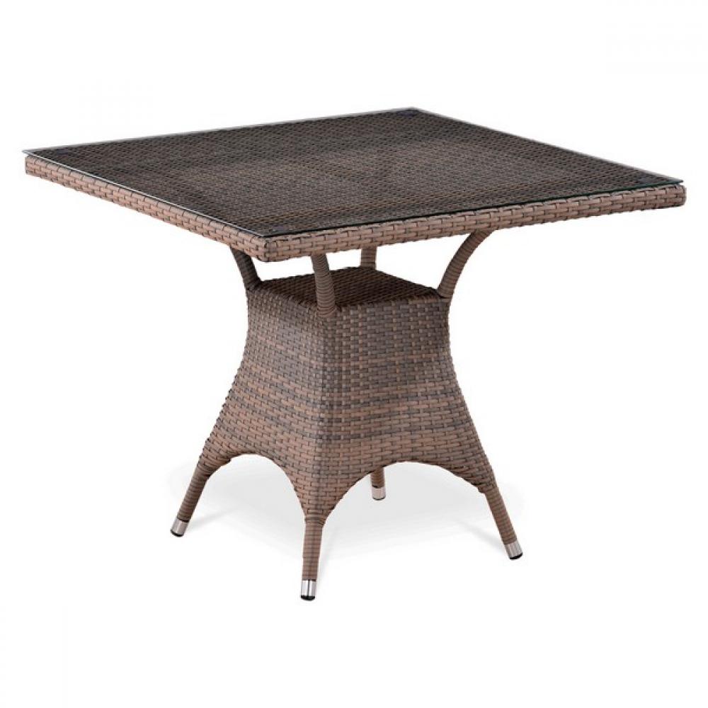 Стол: D80х80xH74 см, Стекло: закаленное- 5мм, Каркас: труба сталь , Цвет: палевый , Объем: 0,06,вес 20 кгХарактеристики:Цвет ПалевыйМатериал Искусственный ротангФорма КвадратныйСтолешница СтеклоРазмер..