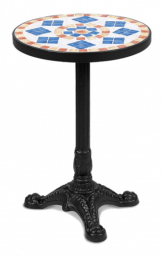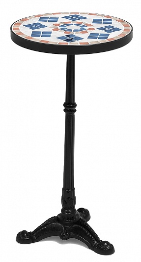 Стол журнальный. Подстолье из сплава чугуна. Столешница: искусственный камень ввиде мозаики.Характеристики:Высота: 61 мДиаметр основания: 32смВес: 7,6 кгПроизводство: Китай..