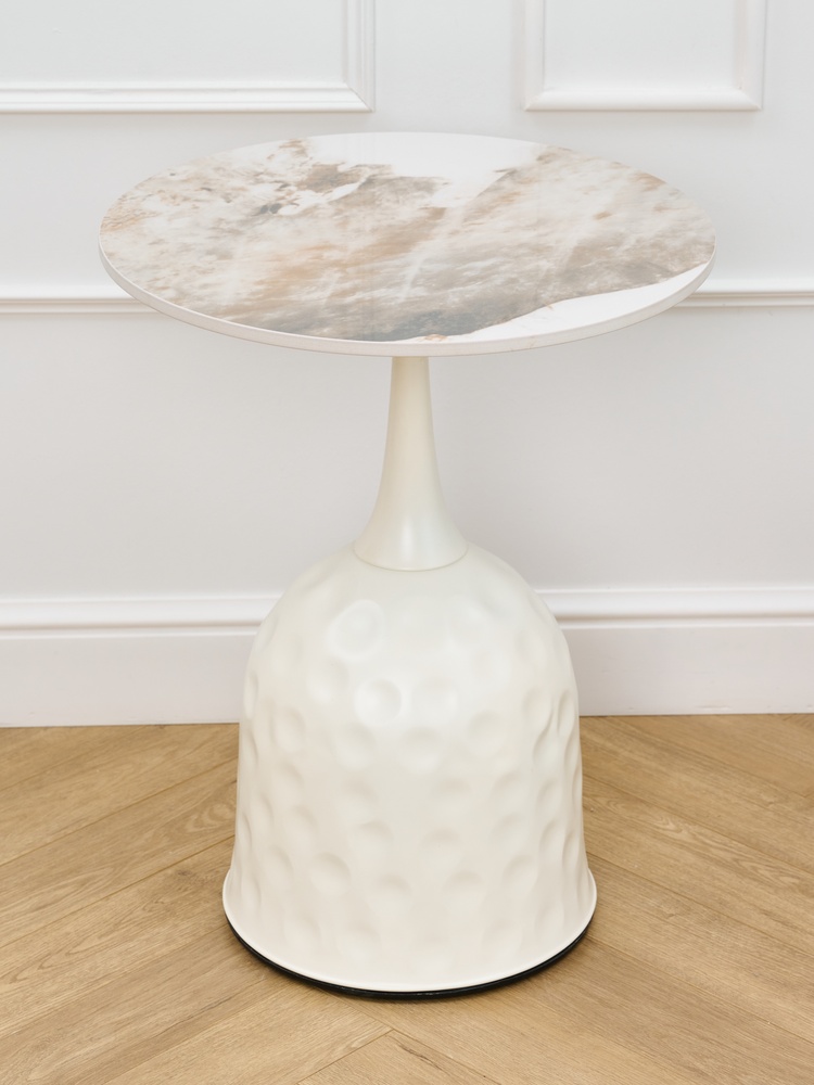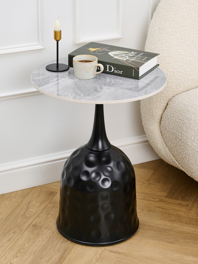 Стол журнальный. Основание: сталь. Столешница: керамика.Характеристики:Высота: 55 смДиаметр столешницы: 48смДиаметр основания: 30 смВес: 10 кгПроизводство: Китай..