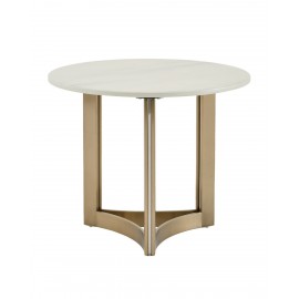 Калисто — это современный журнальный столик, в котором изысканная геометрия сочетается с контрастной палитрой. Круглая мраморная столешница с изысканным рисунком под керамику подчёркнута тёплым металл..