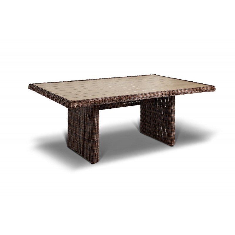 Столешница выполнена из современного полимерного материала ДПК в тон ротанга.