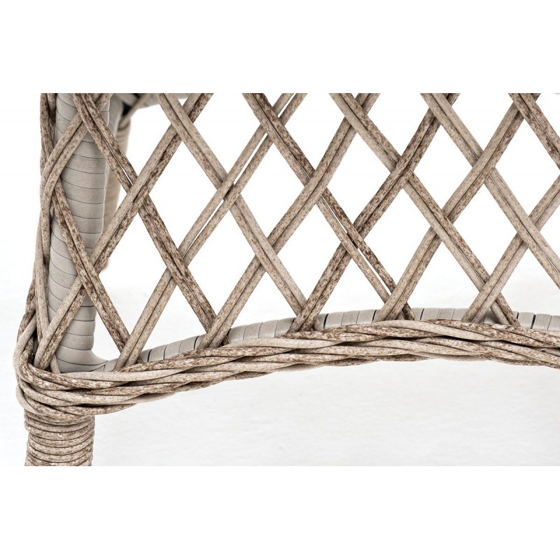 Каркас изготовлен из прочного и очень легкого алюминия. Вручную оплетен синтетическим ротангом натурального бежевого оттенка.
