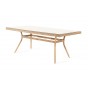 Каркас изделия изготовлен из алюминия, благодаря чему большой стол удобно перемещать. В качестве оплетки использован искусственный ротанг круглого ручного плетения в натуральном соломенном оттенке.