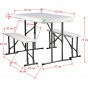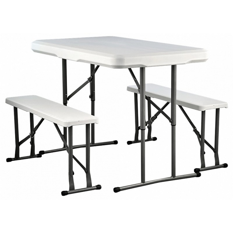 Складной набор для пикника: стол и две лавочки. Все складывается в один стол. Цвет: белый (гранит). Толщина столешницы 3.5 см. Размер в сложенном состоянии 64х107х9 см. Труба Ø25х0.8 мм.