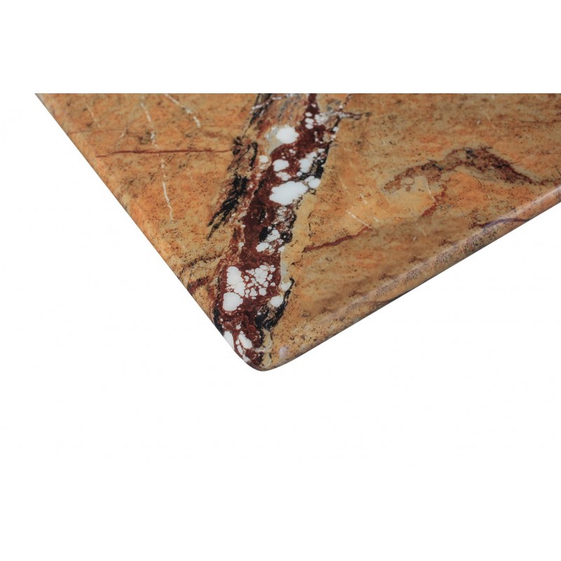 Красивая столешница гармонирует с геометричными ножками. Такое сочетание эффектно смотрится в любом интерьере.