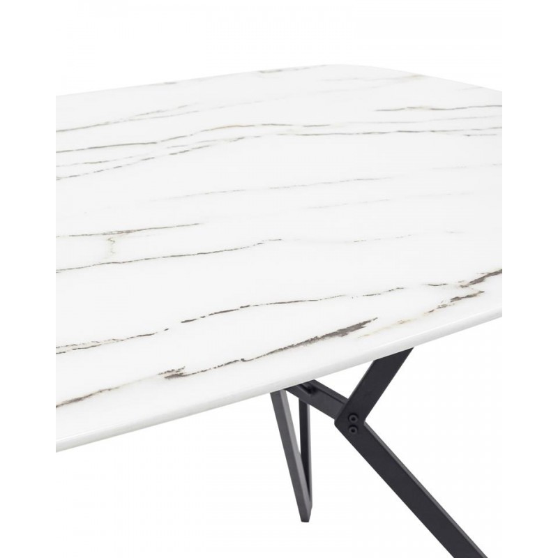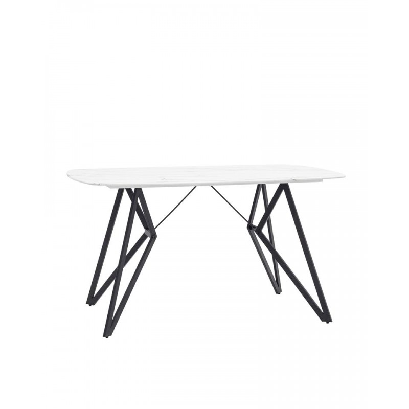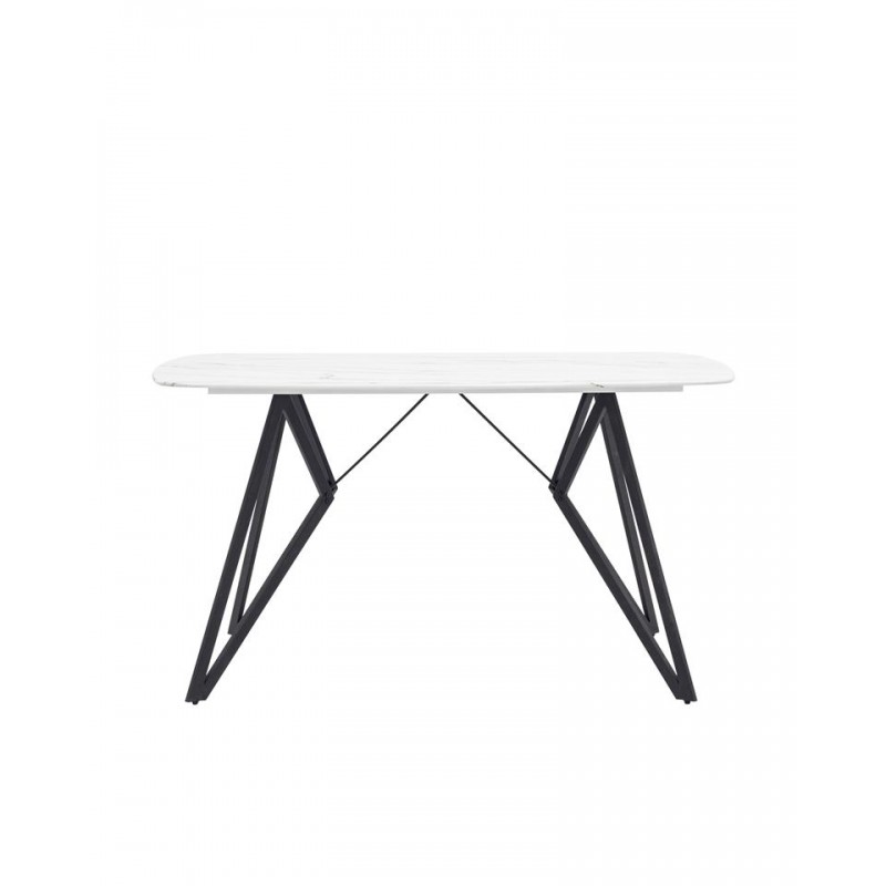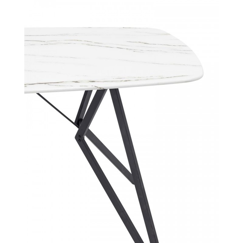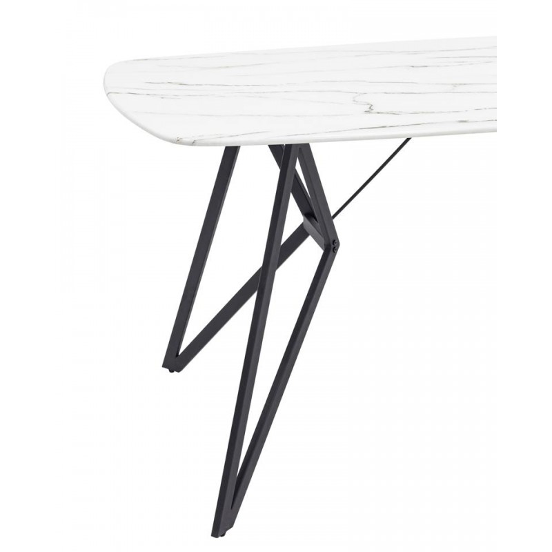 Красивая форма столешницы ярко контрастирует с металлическими черными геометричными ножками. Такое сочетание эффектно смотрится в любом интерьере.