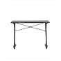 Прочная столешница выполнена из ХДФ-плиты (аналог МДФ, но повышенной прочности и тоньше), покрытой виниловой пленкой под карбон. Форма столешницы продумана до мелочей, так, выемка для проводов в столешнице со стороны стены позволяет избежать заломов и спутывания проводов.