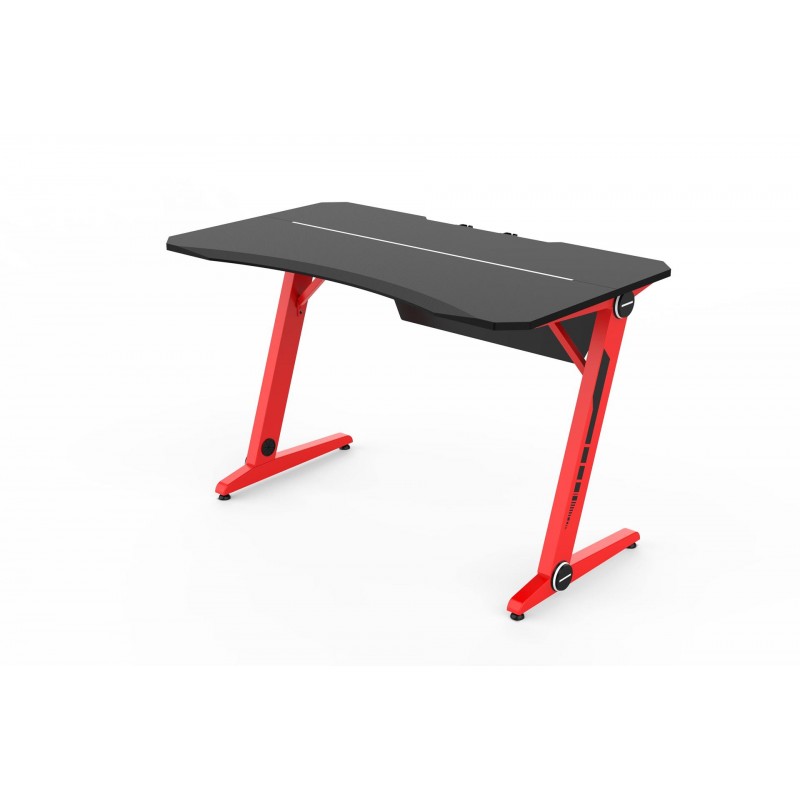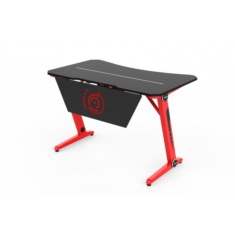Модель стола разработана специально для геймеров, удобная конструкция позволяет разместить необходимые комплектующие ПК и управлять мышью без скованных движений. У стола есть два отверстия для установки мониторов и вывода кабеля под столешницу.