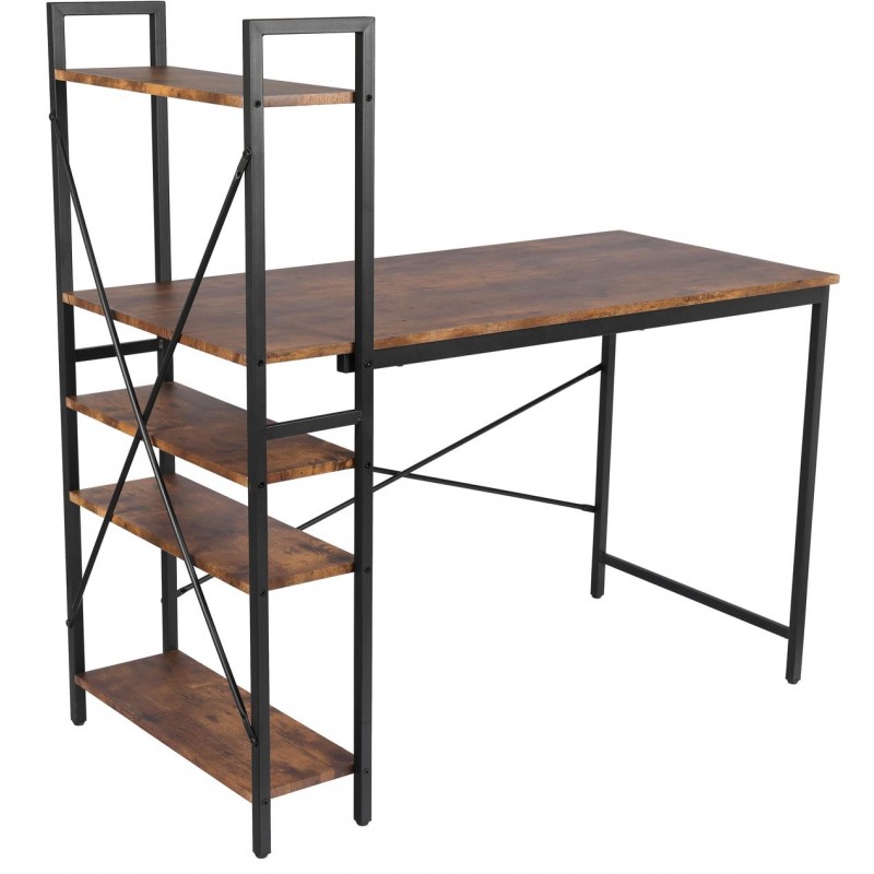 Уникальный компьютерный стол WD-07 – оригинальное и удачное решение для вашего дома или офиса. Функциональная модель будет хорошо смотреться в рабочем кабинете с любым дизайном. Прямоугольная столешница, изготовленная из МДФ толщиной 15 мм и пленки ПВХ, не царапается. Она экологична, влагонепроницаема, устойчива к негативным воздействиям жидкостей и тепла. Надежный каркас выполнен из металла с порошковым покрытием, который обладает износостойкостью и прочностью. Основательные ножки с регулировкой отлично компенсируют неровности пола, что придает модели устойчивость. Компьютерный стол имеет четыре дополнительных полки из МДФ, которые можно использовать не только для бумаг, документов и оргтехники, но и для интересных предметов интерьера. Оригинальное сочетание коричневой столешницы и черного каркаса смотрится стильно и изысканно. Модель идеально впишется в любой современный интерьер, станет центральным элементом в помещении и прослужит вам долгие годы. Стол очень прост в сборке, инструкция по сборке прилагается.