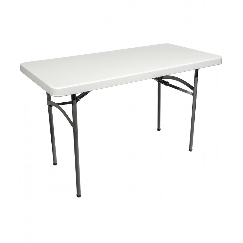Стол прямоугольный 122*61*74* см. Столешница: пластик, 4,5 см. Каркас - металлическая труба 25*1 мм. Упаковка - белый картон, по 1 шт. в коробке. Столешница складывается.