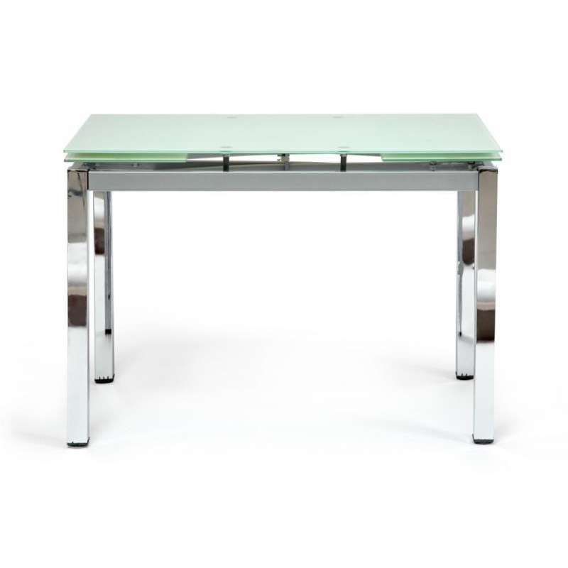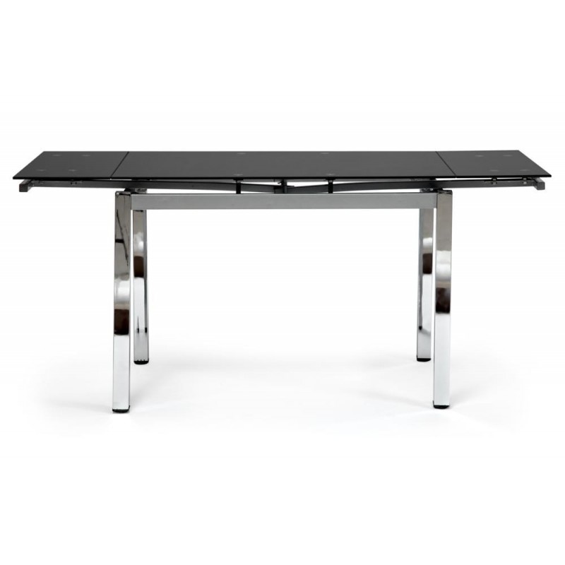 Стол «Campana» оснащён столешницей из закаленного стекла, а также стильными хромированными ножками. Дополнительные секции раскладываются по бокам благодаря надёжному механизму.Стол, выполненный в стиле модерн, подчеркнет индивидуальность вашей кухни, не перегружая ее лишними деталями.