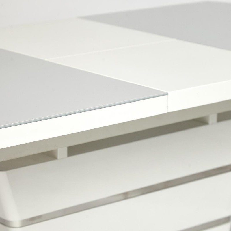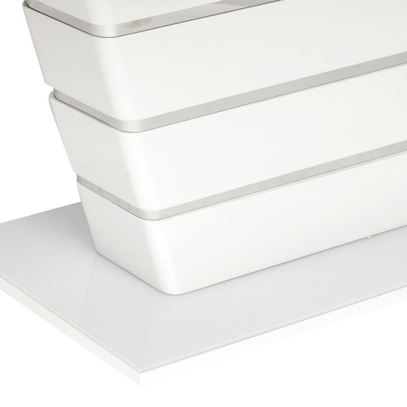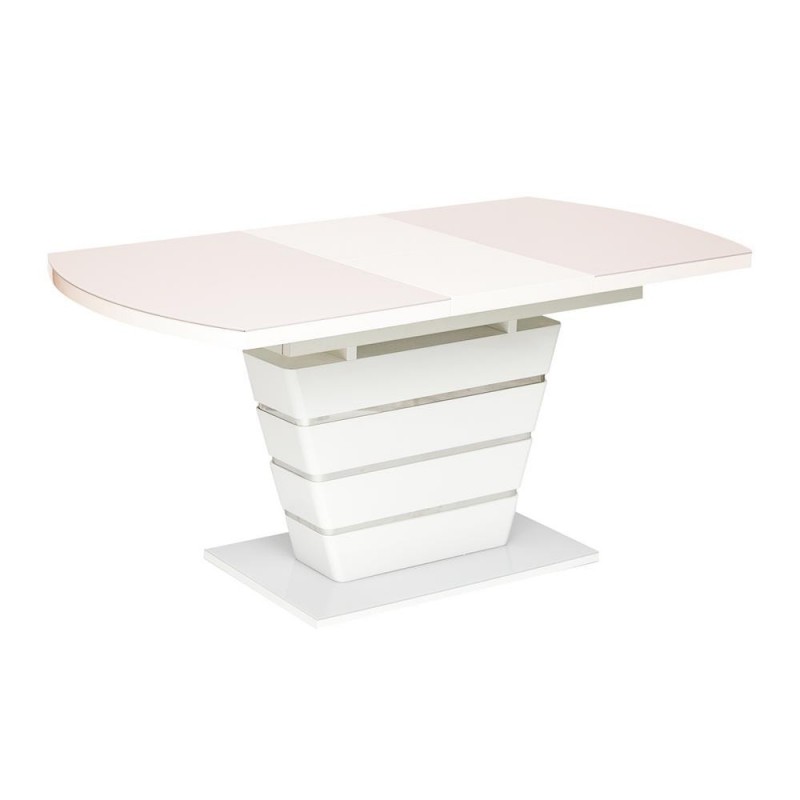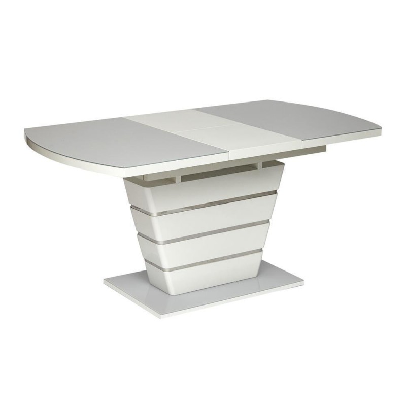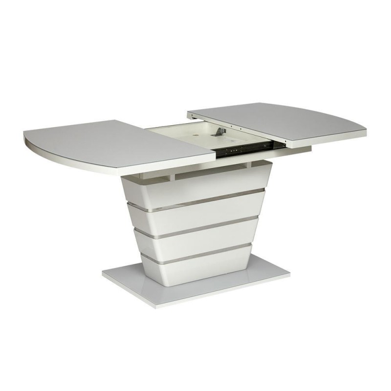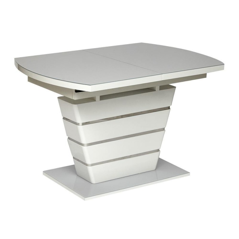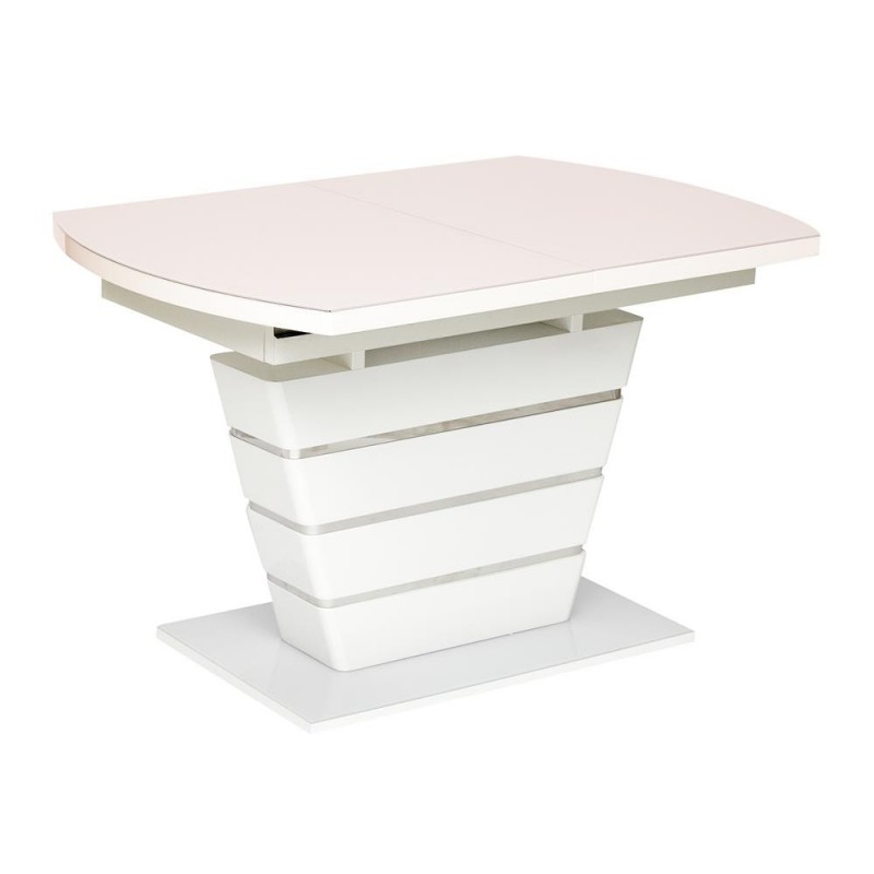 На тяжёлой и устойчивой стальной подставке расположилась ножка с удобно раскладывающейся столешницей, покрытой высокоглянцевым лаком. Установить центральную секцию, чтобы увеличить площадь стола, не составляет труда, благодаря надёжному механизму.Стол, выполненный в стиле модерн, подчеркнет индивидуальность вашей кухни, не перегружая ее лишними деталями.
