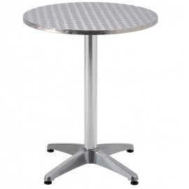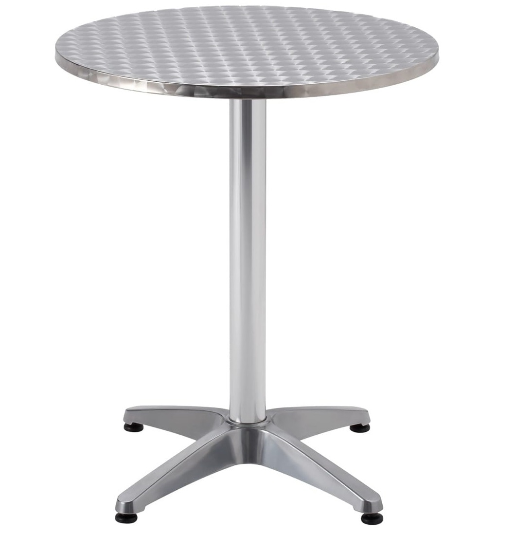 Характеристики:Столешница алюминий (анодированная поверхность) -D=600мм, h=700мм. Опора алюминий, - D58мм, T1,0мм. Крепеж.крестовина 300х300мм. Размер основания 580х580мм.Вес - 7к..