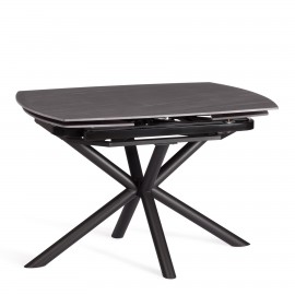 Обеденный стол раскладной.Столешница выполнена из прочного и долговечного МДФ. Светлая глянцевая поверхность столешницы гармонично сочетается с черными металлическими ножками. Простая прямоугольная фо..