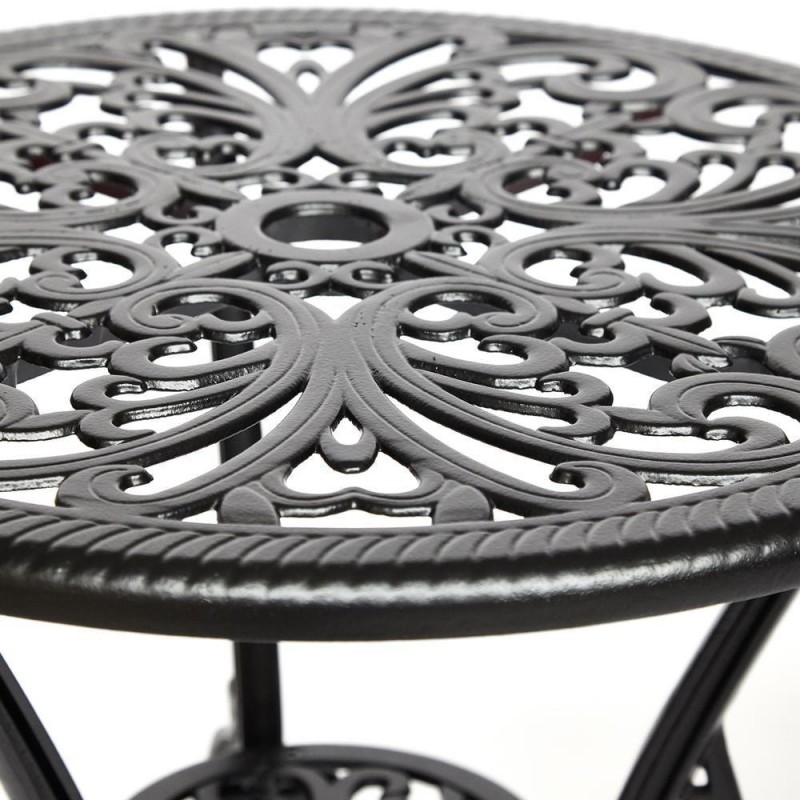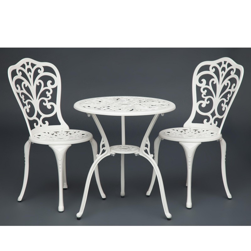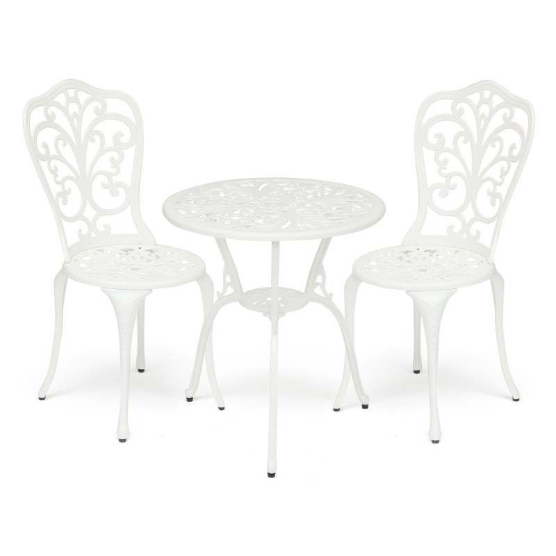 Элегантный комплект кованой мебели Secret De Maison Romance из коллекции JARDIN, состоящий из стола и двух стульев, − идеальное решение для отдыха на загородном участке. Плавные витиеватые изгибы ажурных орнаментов столешницы и спинок стульев, выполненных вручную, добавят ноты изысканности и индивидуальности в ваш интерьер. Устойчивый стол на трех ножках, дополненный миниатюрной нижней полочкой, и два удобных стула выглядят легкими и практически невесомыми. Эта прочная и практичная мебель, способна выдержать большие нагрузки, устойчива к любым погодным условиям и долгие годы сохранит свой презентабельный вид. Комплект прекрасно соче