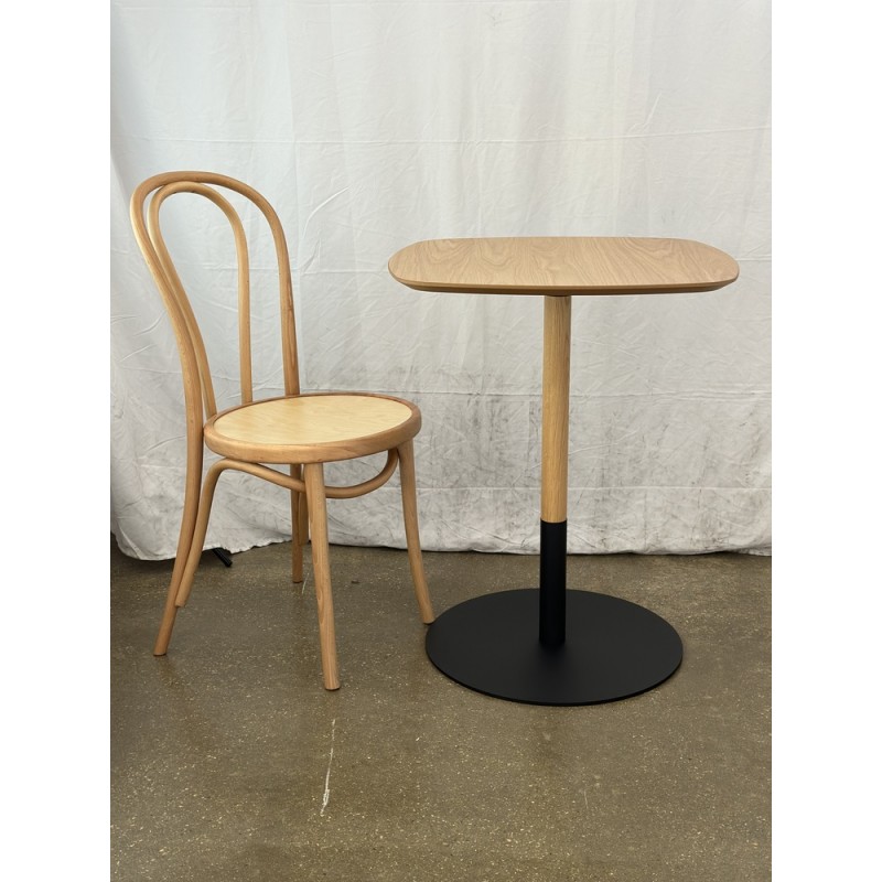 Стол. Основание: сталь. Столешница: МДФ + шпон дуба. Ножки: массив дерева.