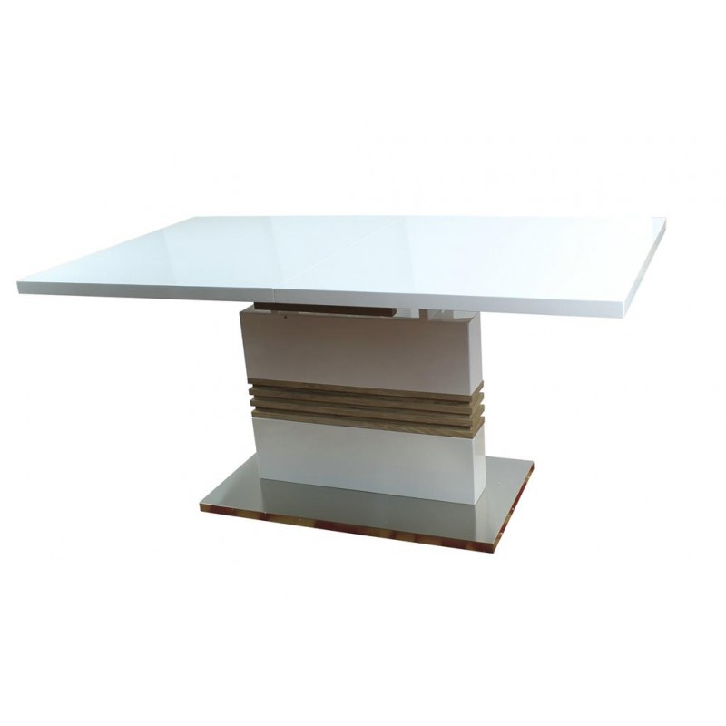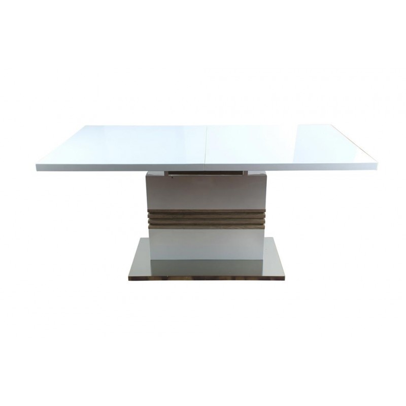 Столешница выполнена из прочного и долговечного МДФ. Светлая глянцевая поверхность столешницы гармонично сочетается с черными металлическими ножками. Простая прямоугольная форма стола позволит легко вписать его в современный интерьер, стол украсит кухню, гостиную или современное кафе, ресторан.