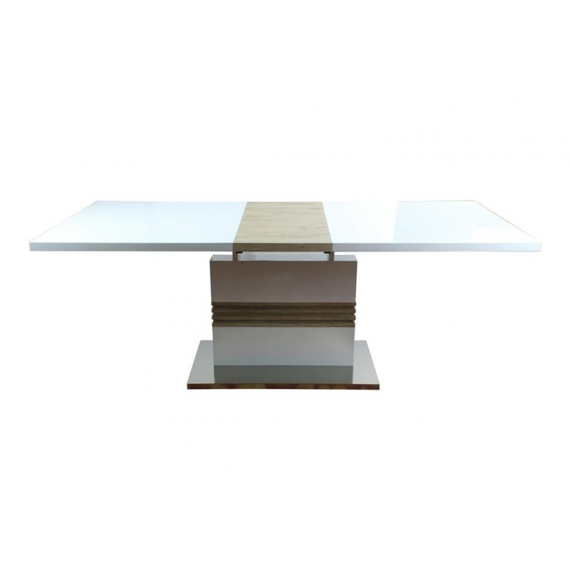 Дополнительная вкладка стола выполнена из МДФ с бумажным шпоном цвета беленого дуба. На вкладке предусмотрена петля для комфортного открытия стола одной рукой.