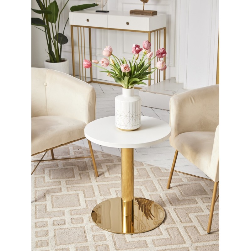 Стол журнальный. Подстолье хромированное золотого цвета (нитрид титана). Лаковое покрытие.