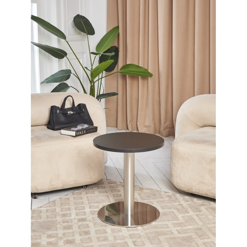 Стол журнальный. Подстолье из полированной нержавеющей стали (матовое). Основание плоское.