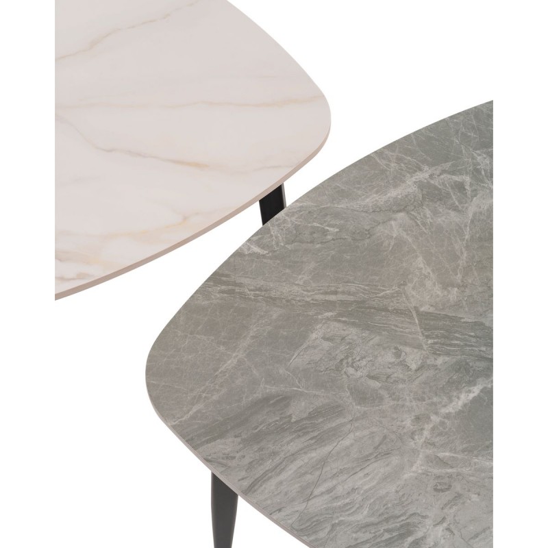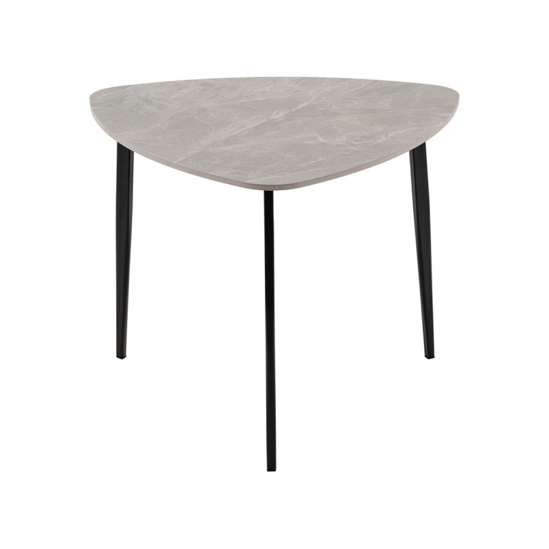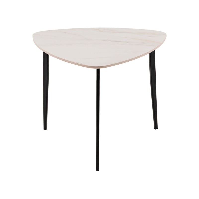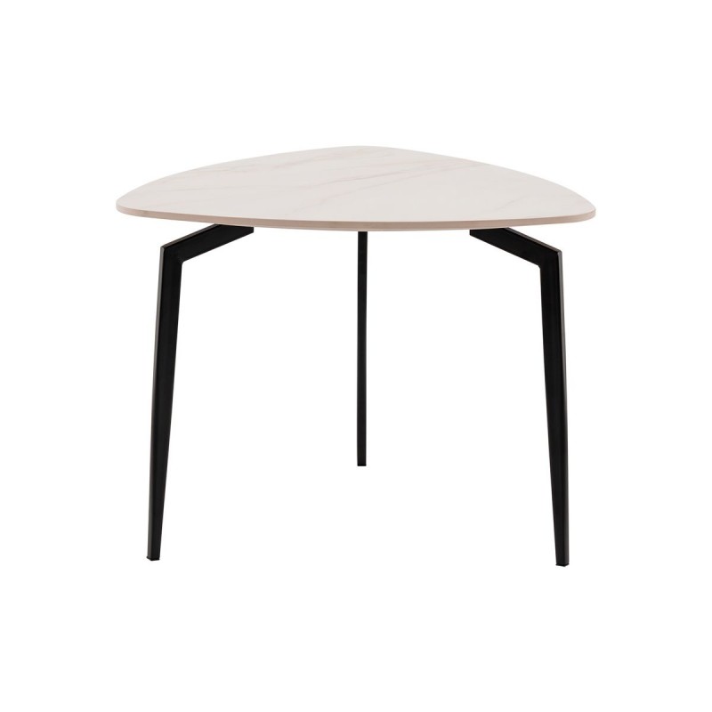 Журнальный столик Alara это стильный акцент для современного интерьера. Его необычная треугольная форма со скруглёнными углами выделяется на фоне классических решений и придаёт интерьеру индивидуальность и лёгкость. Изящные три металлические ножки в чёрном цвете обеспечивают устойчивость и визуально «поднимают» столик, создавая ощущение воздушности конструкции. Столешница выполнена из керамики в благородном светлом оттенке с имитацией мраморной текстуры. Это не только визуально привлекательное решение, но и практичное: керамика устойчива к царапинам, высокой температуре и легко очищается. Ножки из металла обеспечивают надёжность и долгий срок службы изделия. Компактные габариты (51×65×56,5 см) позволяют разместить столик даже в небольших помещениях от гостиной до зоны отдыха на балконе. Благодаря лаконичному дизайну он гармонично впишется как в современные, так и в минималистичные интерьеры. Максимальная нагрузка до 60 кг, что делает его не только эстетичным, но и функциональным.