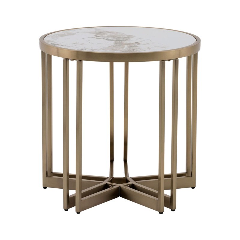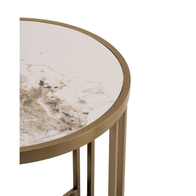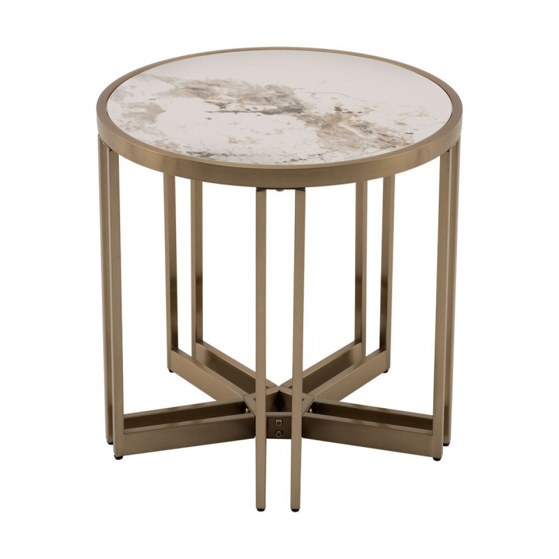 Компактный акцент Модель Алиада в меньшем размере идеально подойдёт для небольших пространств или в качестве вспомогательного столика. Он одинаково хорошо смотрится рядом с креслом, у дивана или в зоне ожидания. Светлая керамика столешницы из спеченного камня придаёт благородство внешнему виду, а стальной каркас цвета шампань обеспечивает прочность и устойчивость. Благодаря компактным размерам, столик легко перемещается и вписывается в разные сценарии использования от сервировки кофе до размещения декора. Размеры: 55×55×55 см. Максимальная нагрузка: 20 кг