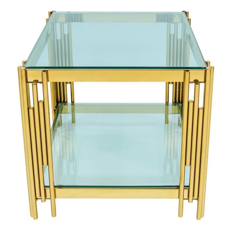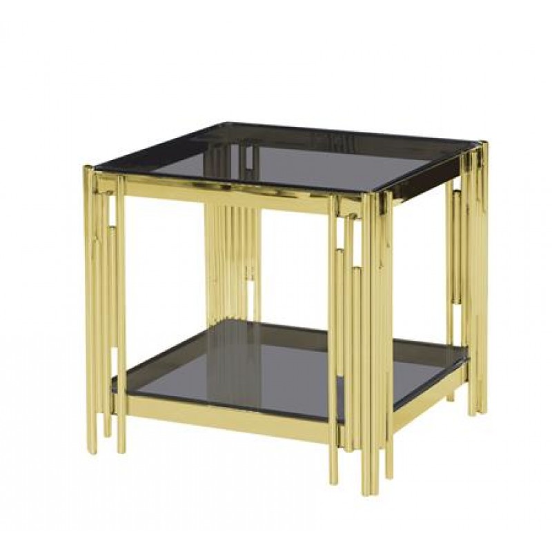 Журнальный столик Гэтсби, стекло smoke, сталь золото