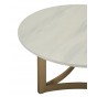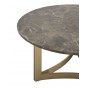 Кассия — это воплощение минималистичной роскоши. Темная мраморная столешница с изысканным рисунком под керамику придаёт интерьеру воздушность и свет. Изящные прожилки на гладкой поверхности создают ощущение лёгкости и природной гармонии. Главная изюминка дизайна — металлическое основание цвета шампань с выразительным арочным силуэтом. Геометрически линии ножек формируют устойчивую и визуально эффектную конструкцию, отсылающую к ар-деко и современному арт-дизайну. Основание прочно соединено в центре, придавая столу монолитность и надёжность. Круглая форма диаметром 90 см делает столик идеальным центральным элементом зоны отдыха. Оптимальная высота 40 см создаёт удобство при использовании, а прочная столешница толщиной 1,5 см визуально облегчает конструкцию, сохраняя её устойчивость и функциональность. Керамическое покрытие устойчиво к износу и легко очищается, а металлическое основание обеспечивает стабильность и долговечность. Столик отлично подойдёт для дома, офиса или зоны приёма, дополняя пространство утончённым современным акцентом.