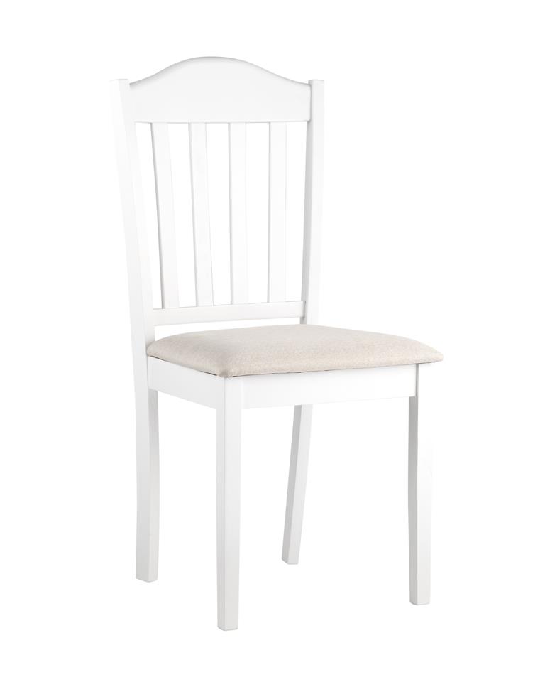 Стул с мягким сиденьем, обивка выполнена из рогожки. Белый каркас - массив гевеи.ХарактеристикиКаркас: массив гевеиВысота сиденья: 490 мм. Ширина: 430 мм. Глубина: 450 м..