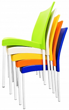 Стул металлический, стопируемый. Стул каркас-алюминий, сиденье-высокопрочный пластик. Цвета: красный, оранжевый, желтый, голубой, салатовый, белый
